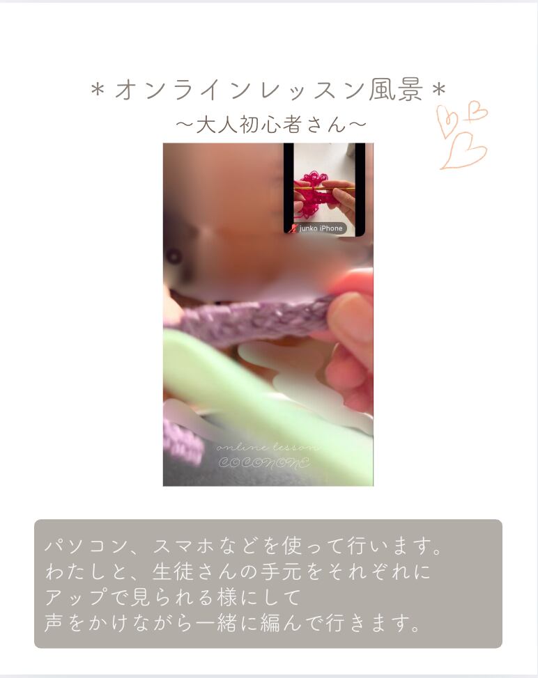 ・リラックスした環境で学ぶことで、より楽しく編み物を楽しんでいただける様に対応させていただきます。